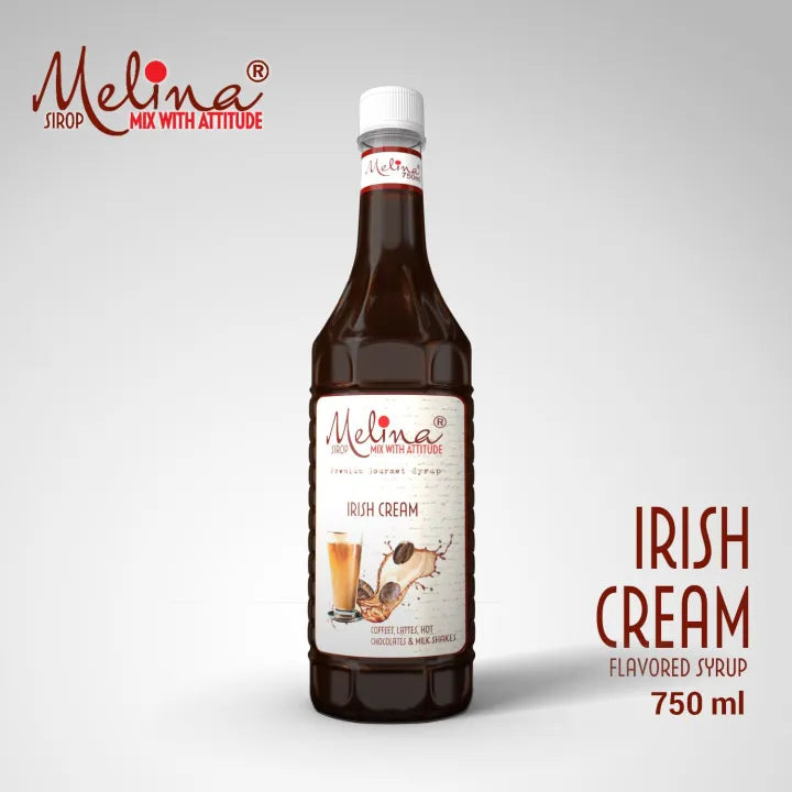 Melina® - Irish Cream Flavored Syrup Versatile flavor, with fresh & Aromatic. Great for Coffees, Mochas, Lattes, Smoothies & Shakes Our Vanilla flavored Syrup will make your drinks flavorful & perfectly sweetened.